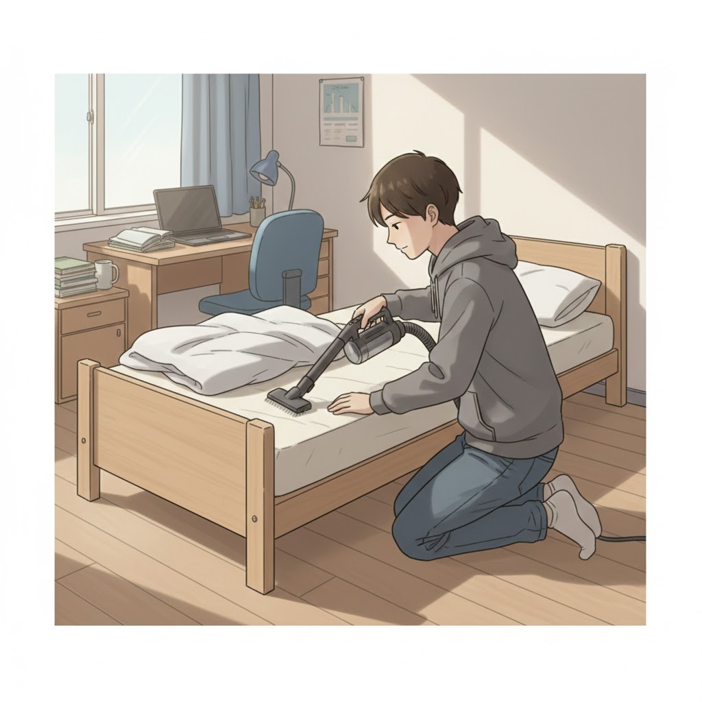 宿舍床墊的日常清潔關鍵不是用力洗,而是「定期吸塵+快速揮發處理」,才能乾淨又不傷床墊。