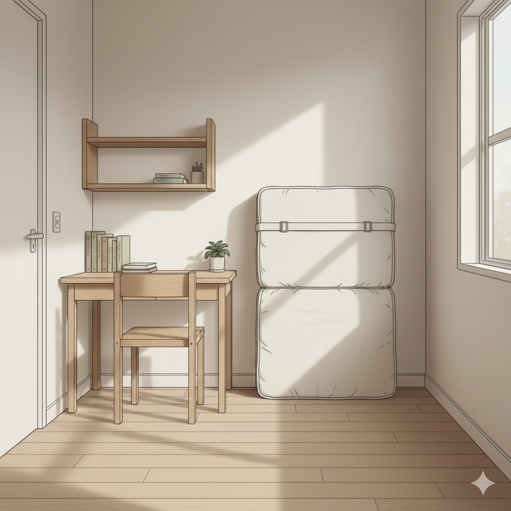 宿舍房間通常坪數有限,若床墊無法立起或折疊,平放在地面時會佔據大量活動空間,也增加整理與清掃的困難。