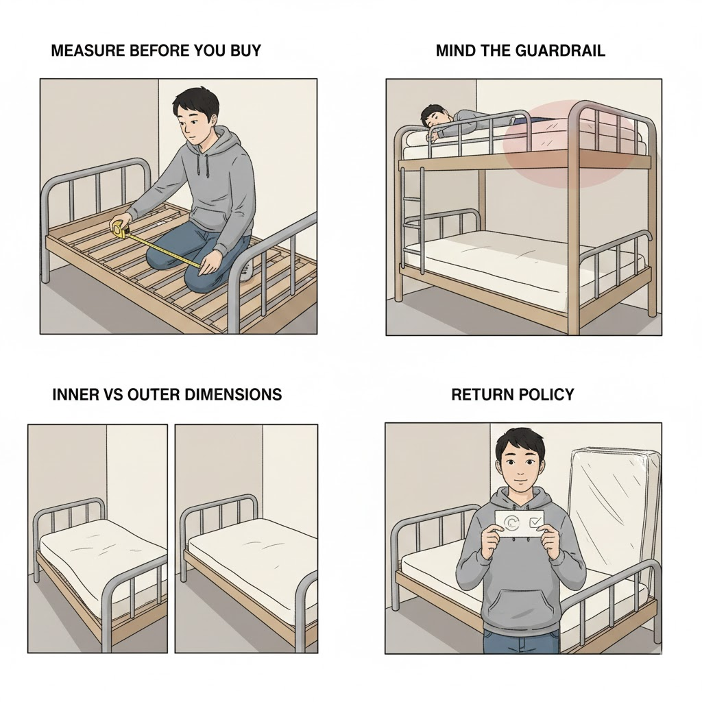 宿舍床墊尺寸最容易出錯的不是長寬,而是「護欄內徑與可用高度」,沒量清楚就下單,最容易後悔。